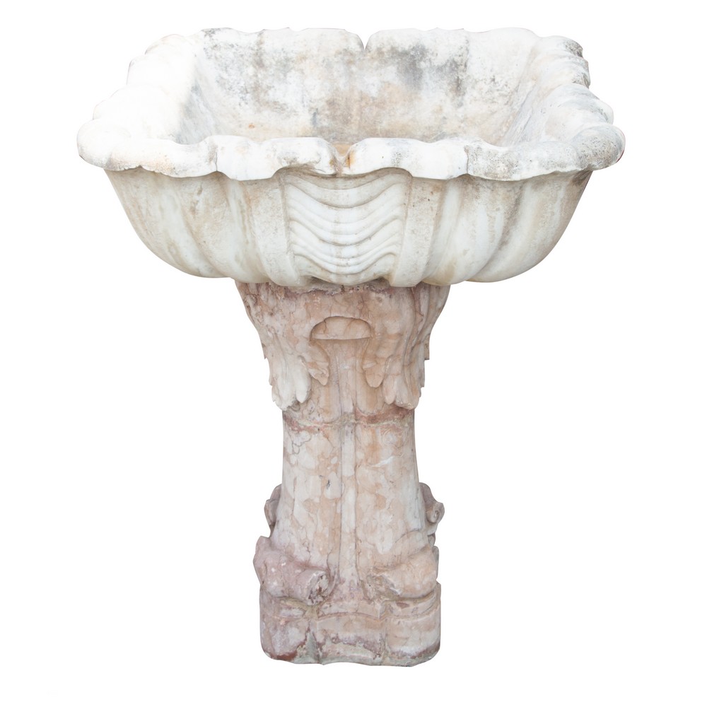 Fontana in marmo bianco con base con marmo rosso (usure).