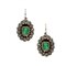 Vecchia coppia di orecchini in oro giallo ed argento, a monachella, con due smeraldi taglio rettangolare e contorno di rosette