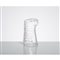 Vaso in vetro trasparente, corpo cilindrico con decoro ad onde sul fronte, bocca circolare piana lievemente inclinata.