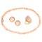 Demi-parure in oro giallo e corallo rosa cabochon composta da una collana, una coppia di orecchini ed un anello