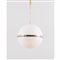 Lampada da soffitto a tre luci, diffusore sferico in plexiglass bianco, decoro centrale a fascia in metallo cromato, struttura in metallo. Lievi ossidazioni sulle parti cromate.