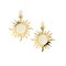 Coppia di orecchini in oro giallo con elemento centrale lavorato a forma di sole stilizzato trattenente al centro dischi in madreperla incisi con l'immagine della Vergine