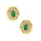 Coppia di orecchini in oro giallo, a lobo, di forma ovale mossa, con due smeraldi taglio ovale al centro, contorno di diamanti taglio brillante
