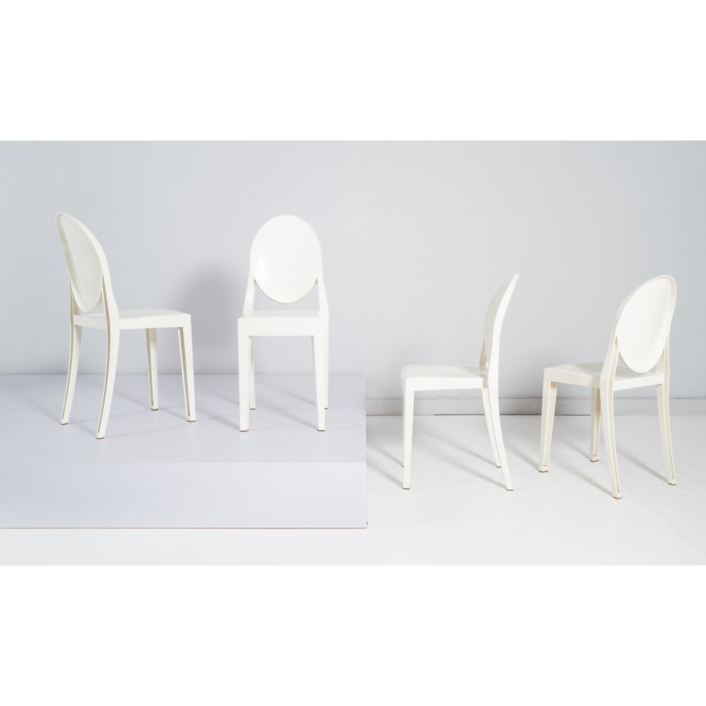 Quattro sedie modello “Victoria Ghost” in policarbonato colorato bianco nella massa. Marchio di produzione.