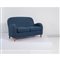 Un divano due posti modello “Daisy”, struttura in faggio con rivestimento in tessuto a trama nei toni del blu, cuscini con imbottitura in piume d’oca, piedi in faggio. Marchio di produzione.