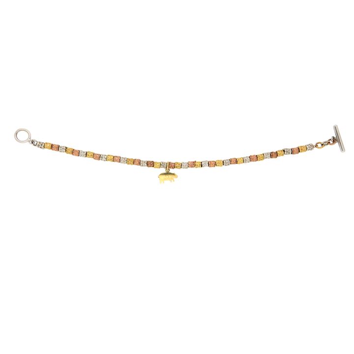 Bracciale composto da grani in argento 925/1000, oro giallo e rosa e un ciondolo a forma di maiale, firmato "Pomellato", modello "Dodo"