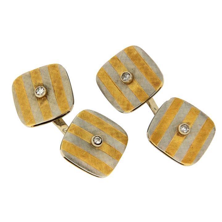 Coppia di gemelli in oro giallo e bianco di forma quadrata con quattro diamanti 8/8