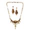 Demi-parure composta da orecchini pendenti e collana in oro a basso titolo, seconda metà XIX secolo, con perline e pietre colorate