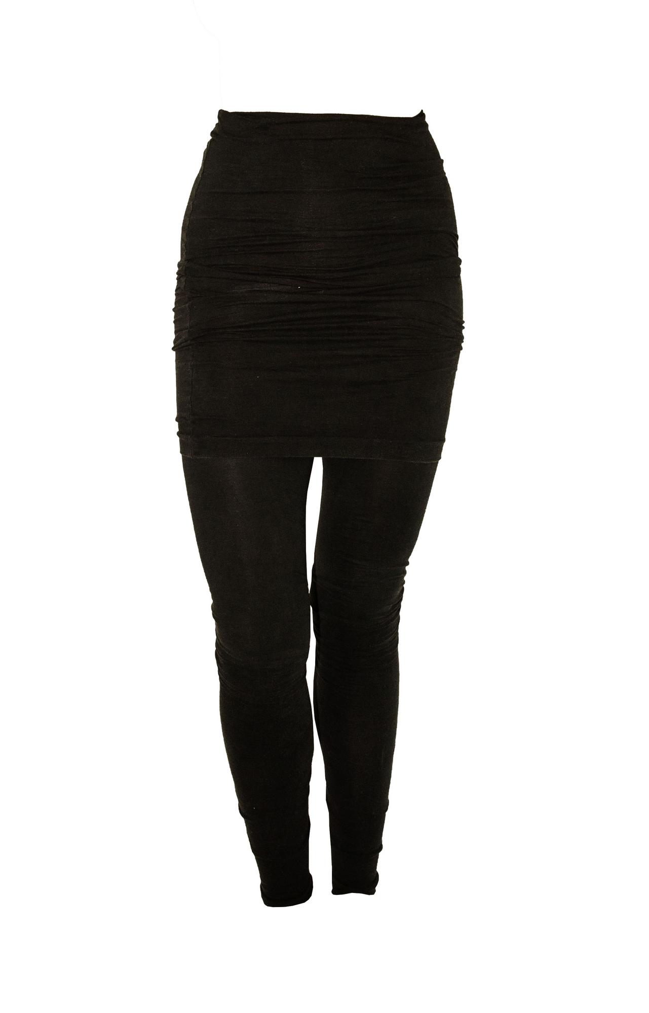 Leggings in stretch cotton jersey with large turn-ups on the hips and to be worn gathered on the legs. Made in Italy in 1992. IT Size 42. Fairly preserved.