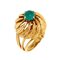 Anello in oro giallo 14 Kt, anni '50, con sommità a cupola composta da foglie raccordate al centro da uno smeraldo taglio cabochon