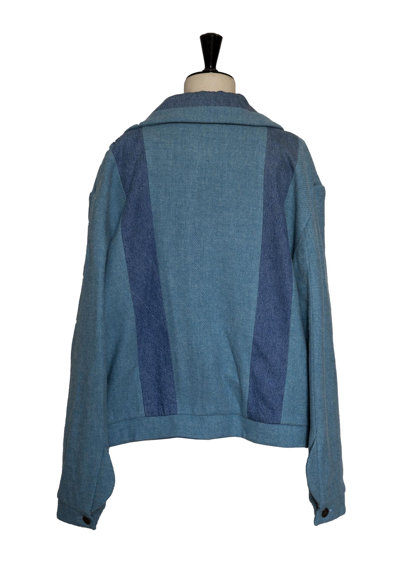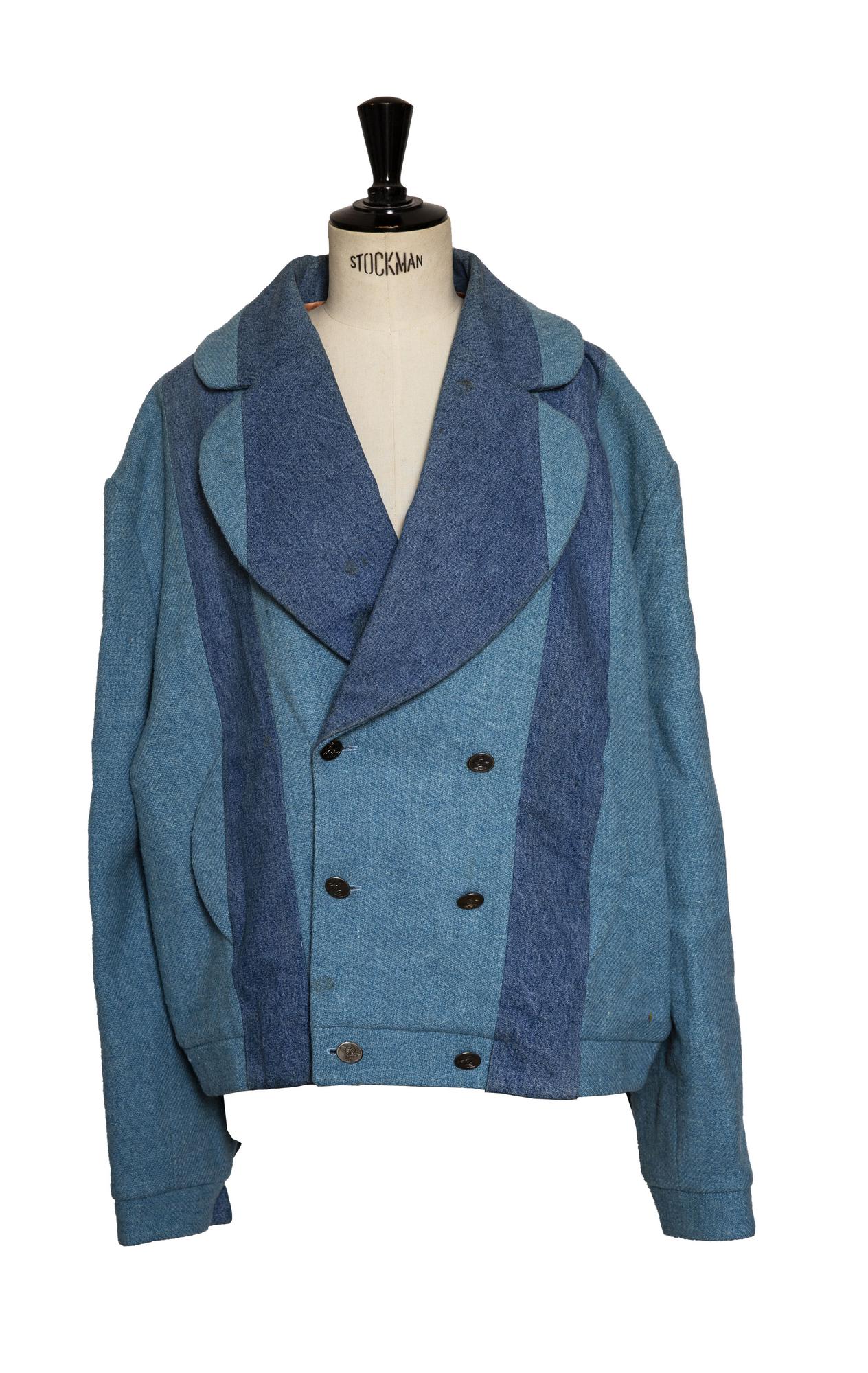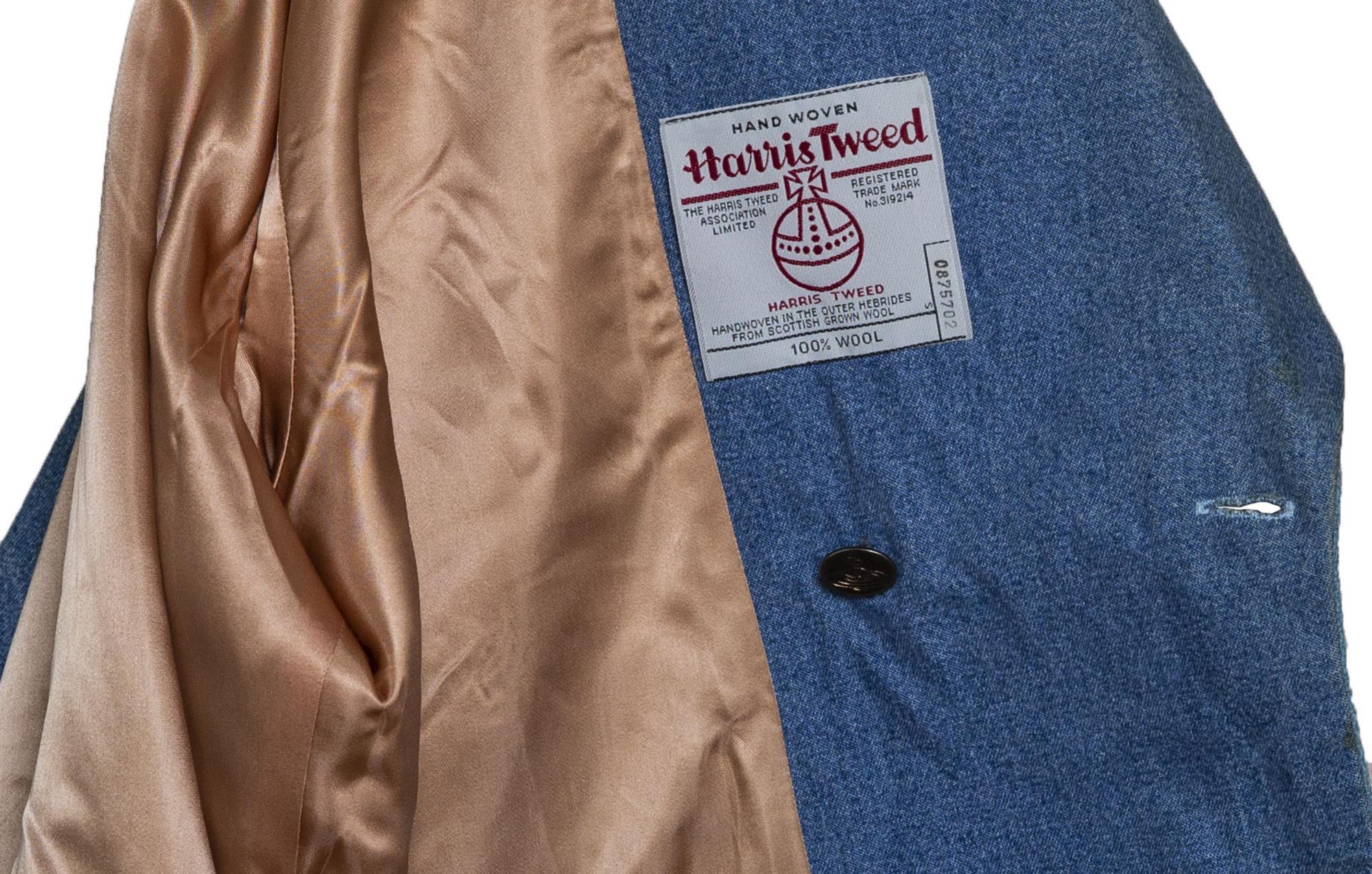 Double-breasted jacket with wide rounded lapels made in Harris Tweed and Denim. Made in England in the 80s. Size XL. Well preserved.