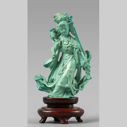 Scultura in turchese raffigurante guanin Cina sec.XX