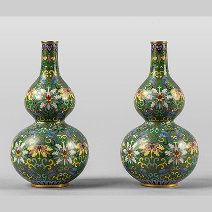Due vasi a forma di zucca in bronzo cloisonnè Cina sec.XX