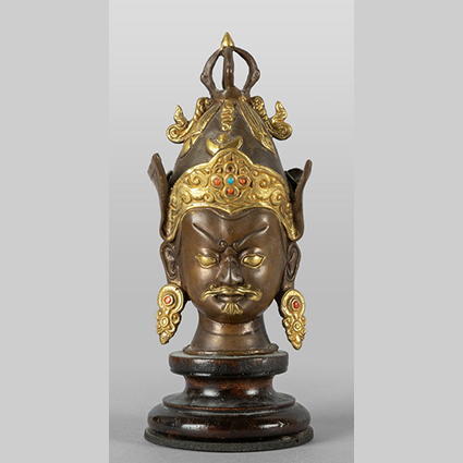 Testa di Budda scultura in bronzo brunito e dorato sec.XX