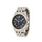 Cassa in tre parti con pulsanti ovali; fondello con oblò in vetro zaffiro; bracciale con chiusura a scomparsa; quadrante serigrafato con numerazione araba; contatore piccoli secondi al 9, ore al 6, minuti al 3; scala tachimetrica periferica