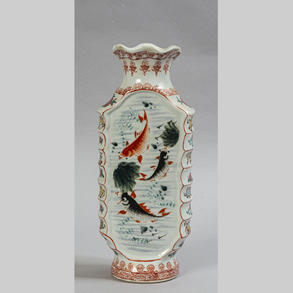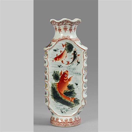 Vaso in porcellana policroma decorato con carpa marcato Cina sec.XX