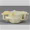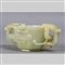 Coppa ottagonale a due manici in giada Celadon scolpita decorata da chilong marcata Zi Sun Yong Bao dinastia Qing (1644-1912)
