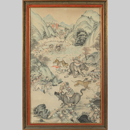 'Caccia al bufalo' dipinto su carta Cina fine sec.XIX