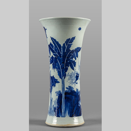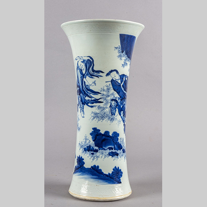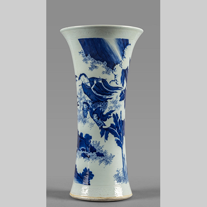 Vaso a tromba in porcellana bianca e blu decorato con figure di danzatori Cina sec.XVIII