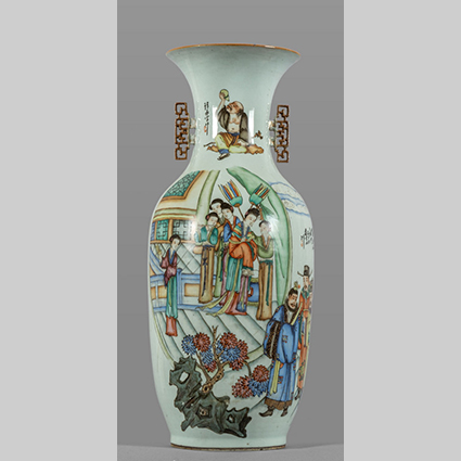 Vaso in porcellana decorato con figure e fiori Cina sec.XIX
