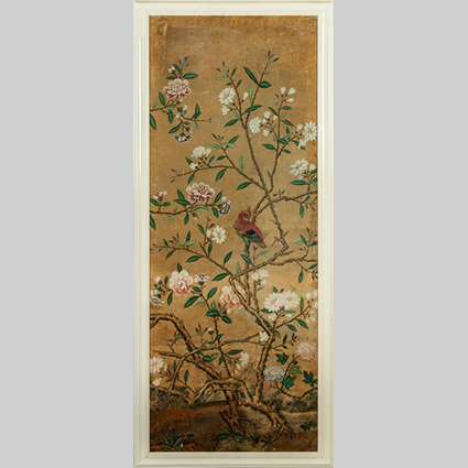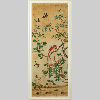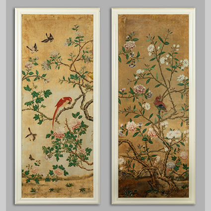 Coppia di pannelli su carta decorati a motivi di fiori e uccelli Cina sec.XVIII