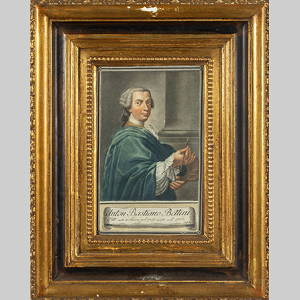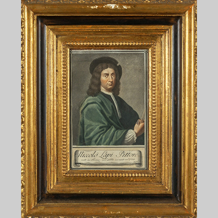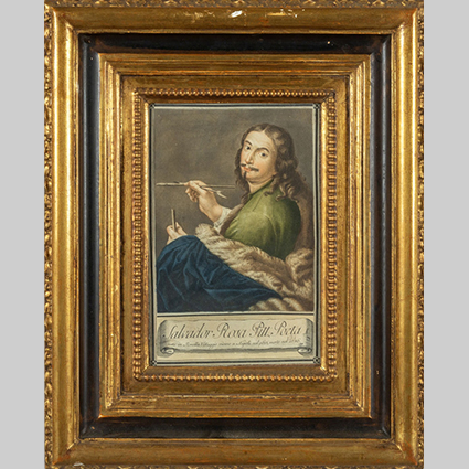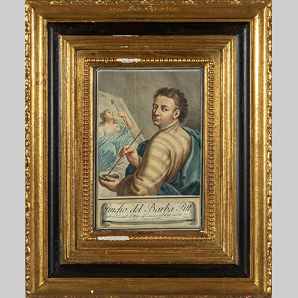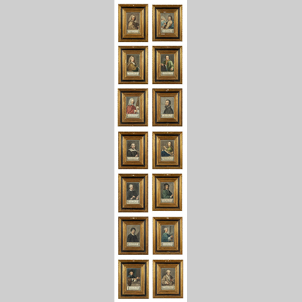 'Pittori' quattordici stampe acquarellate contrassegnate dai numeri 221 98 85 19 321 87 219 81 308 323 250 212 59 130 cornici in legno intagliato e dorato sec.XX