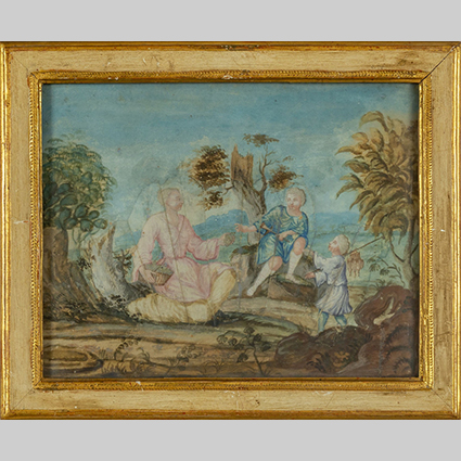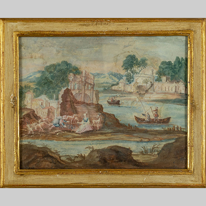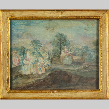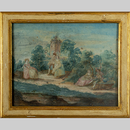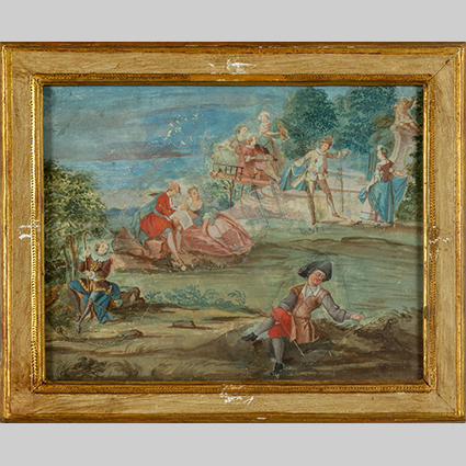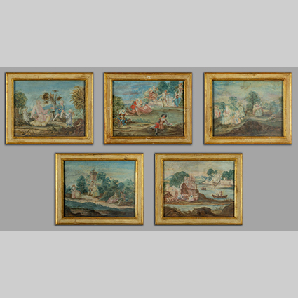 'Paesaggi con figure' cinque tempere ricostruite da antichi ventagli sec.XVIII