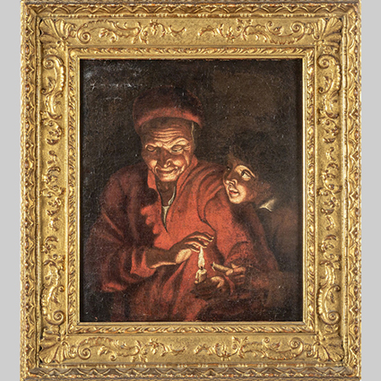 Scuola fiamminga sec.XVII 'Notturno con candela' olio