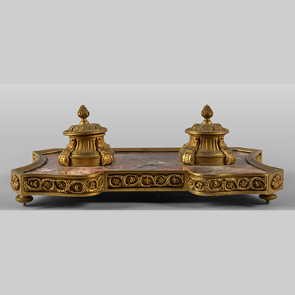 Calamaio in bronzo dorato e marmo Francia sec.XIX