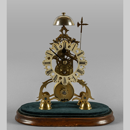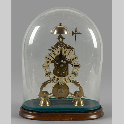 Orologio scheletrico in bronzo nella sua campana in vetro sec.XIX