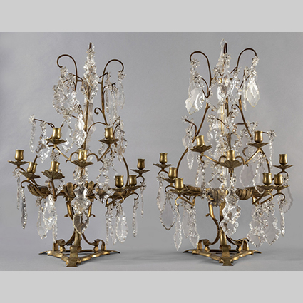 Coppia di girandoles in bronzo dorato e cristalli sec. XX