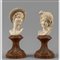 Coppia di bustini in avorio raffiguranti bambino con cappello e bimba sorridente basi in legno f.ti G.Borrelli inizi sec.XX