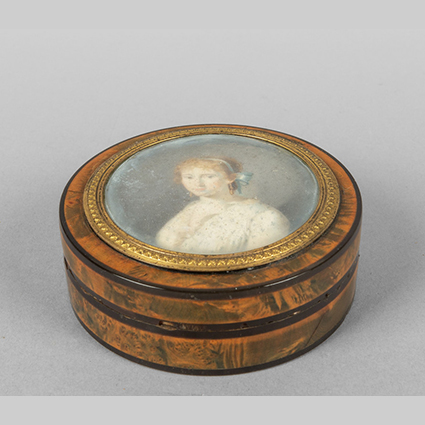 Scatola in radica con miniatura raffigurante fanciulla dipinta ad olio Francia sec.XIX