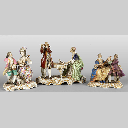 Tre gruppi in porcellana policroma raffiguranti concertini sec.XIX (difetti e mancanze)