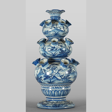Tulipaniera in ceramica bianca e blu marcata Cantagallo