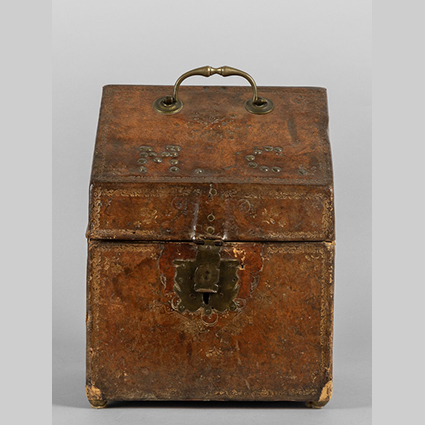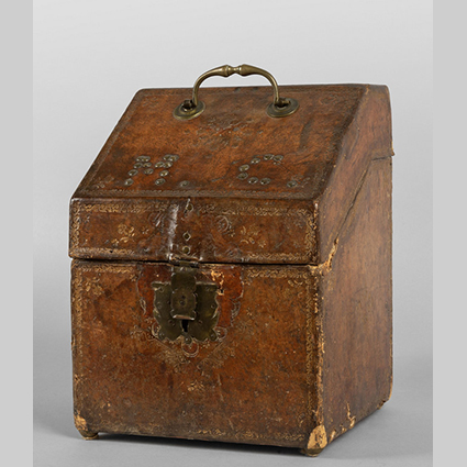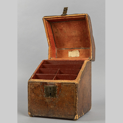 Antica scatola portaposate in pelle adattata a cartonier sec.XVIII