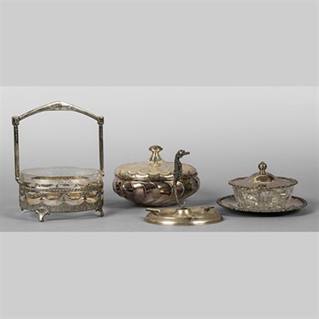 Cestino scatola portacenere e formaggiera in cristallo ed argento