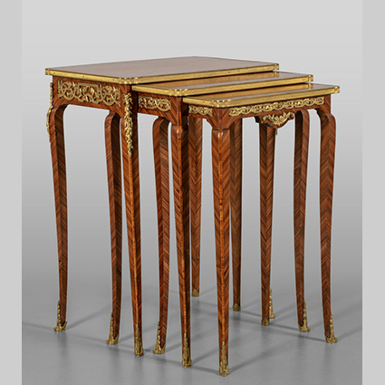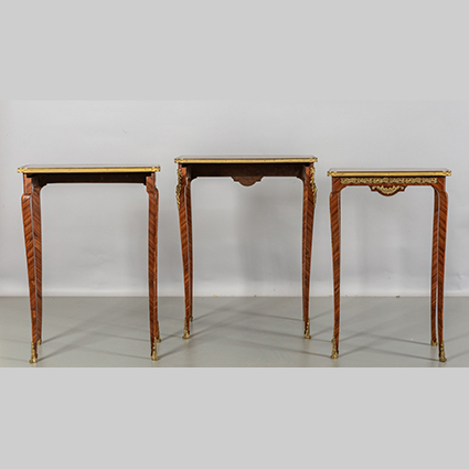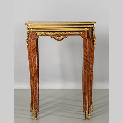 Tavolino a nido Napoleone III lastronato in palissandro e legno di rosa ricca applicazione in bronzo dorato sec.XIX