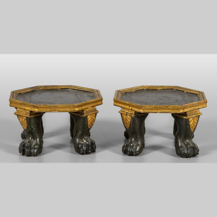 Coppia di basi portavaso in legno intagliato laccato e dorato inizi sec.XIX