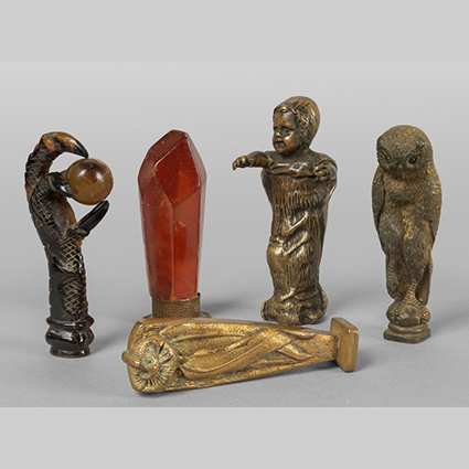 Precedente Lotto 0814 Successivo Aste Boetto - Via Mura dello Zerbino 10R, 16122 Genova ASTA DI ANTIQUARIATO E ARTE ORIENTALE Asta di Antiquariato e Arte Orientale martedì 26 settembre 2023 ore 10:00 (UTC +01:00) OGGETTISTICA Cinque sigilli di varie epoche e materialicirca cm.8