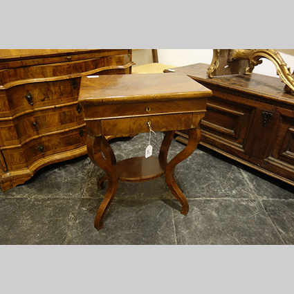 Tavolino da lavoro Carlo X lastronato in mogano inizi sec.XIX