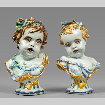 Putti coppia di busti in terracotta policroma s.ti nel fondo GB