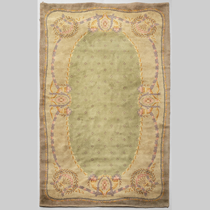 Tappeto Liberty 'Savonerie' nei toni del verde beige e rosa