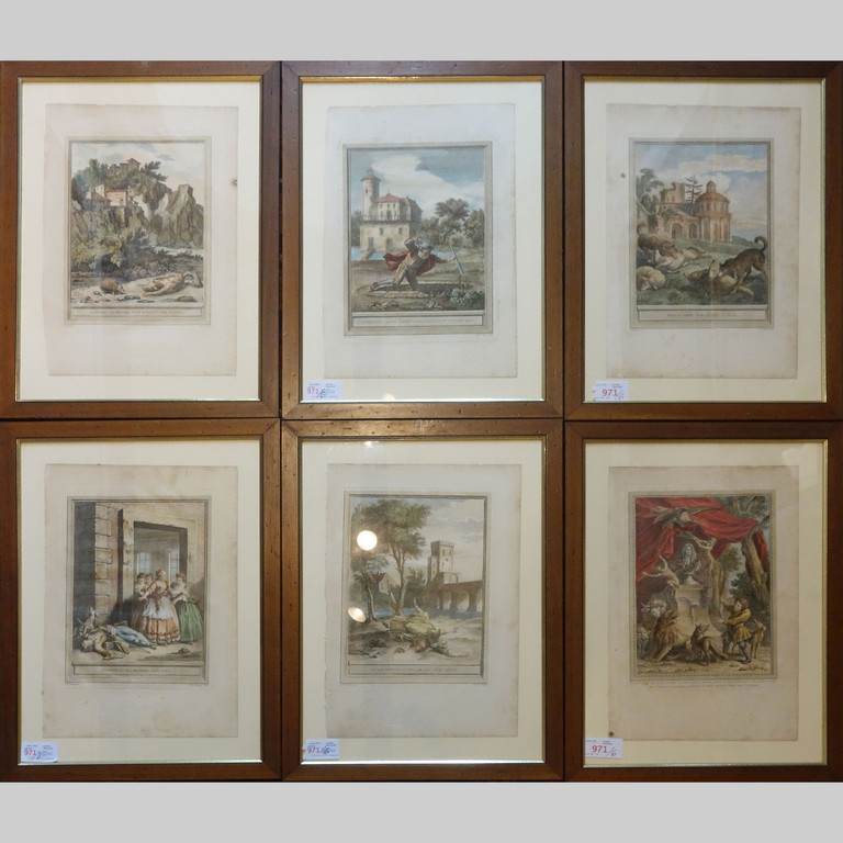 Sei stampe acquarellate da G.Batiste Oudry sec.XVIII