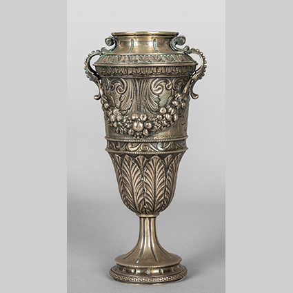 Precedente Lotto 1010 Successivo Aste Boetto - Via Mura dello Zerbino 10R, 16122 Genova ASTA DI ANTIQUARIATO E ARTE ORIENTALE Asta di Antiquariato e Arte Orientale martedì 26 settembre 2023 ore 10:00 (UTC +01:00) OGGETTISTICA Vaso in argento con ghirlandah.cm.25 gr.280