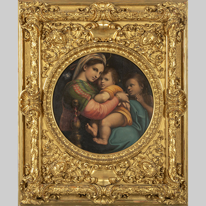 'Madonna della Seggiola' olio cornice in legno finemente intagliato e dorato sec.XIX