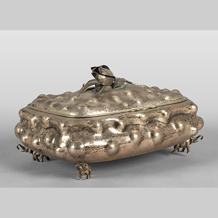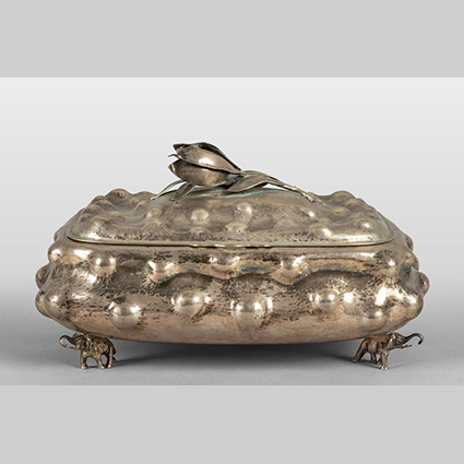 Precedente Lotto 1035 Successivo Aste Boetto - Via Mura dello Zerbino 10R, 16122 Genova ASTA DI ANTIQUARIATO E ARTE ORIENTALE Asta di Antiquariato e Arte Orientale martedì 26 settembre 2023 ore 10:00 (UTC +01:00) OGGETTISTICA Scatola in argento sbalzato presa con tulipanogr.1290