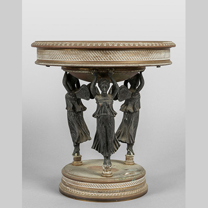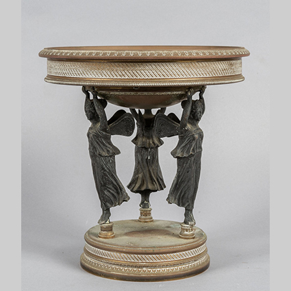 Alzata in bronzo dorato e brunito fine sec.XIX parte superiore con inserito un pianetto in marmo fine sec.XIX