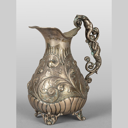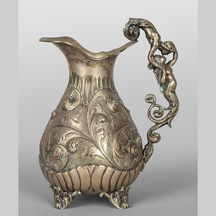 Precedente Lotto 1054 Successivo Aste Boetto - Via Mura dello Zerbino 10R, 16122 Genova ASTA DI ANTIQUARIATO E ARTE ORIENTALE Asta di Antiquariato e Arte Orientale martedì 26 settembre 2023 ore 10:00 (UTC +01:00) OGGETTISTICA Brocca in argento con prese a sireneh.cm.21 gr.920
