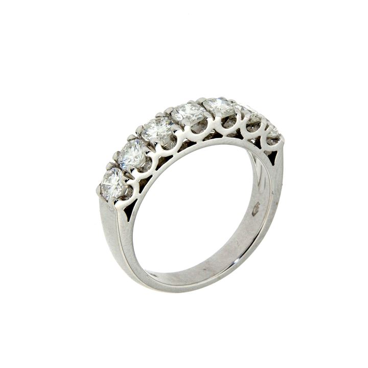 Anello in oro bianco con sette diamanti taglio brillante per complessivi ct 1,38, colore G, purezza IF-VVS